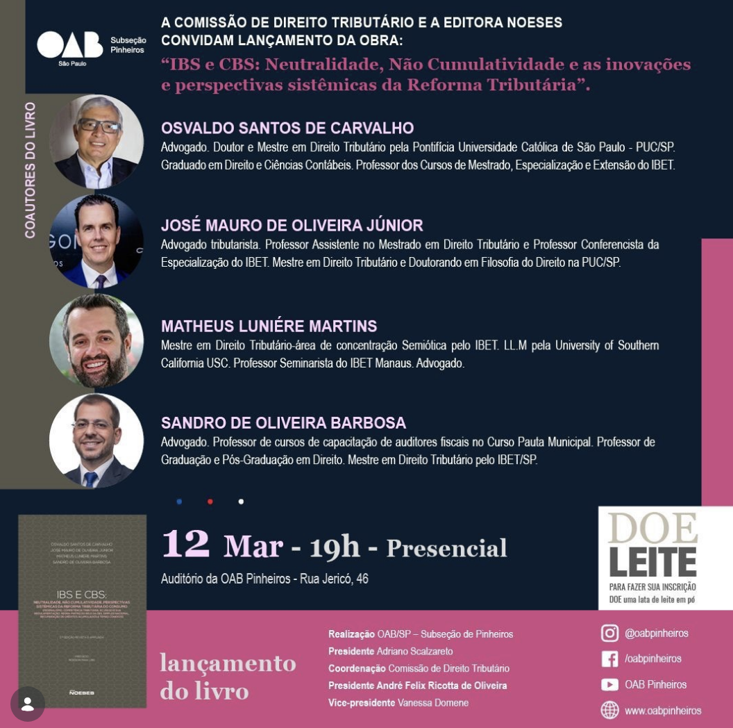 Um encontro especial para debater os impactos e as perspectivas da reforma tributária no Brasil, reunindo grandes nomes do Direito Tributário.